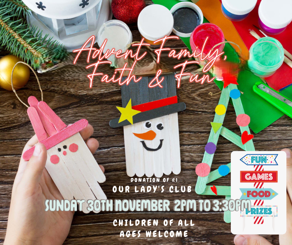 Sunday 30th November 2pm - 3.30pm at Our Lady’s Club.