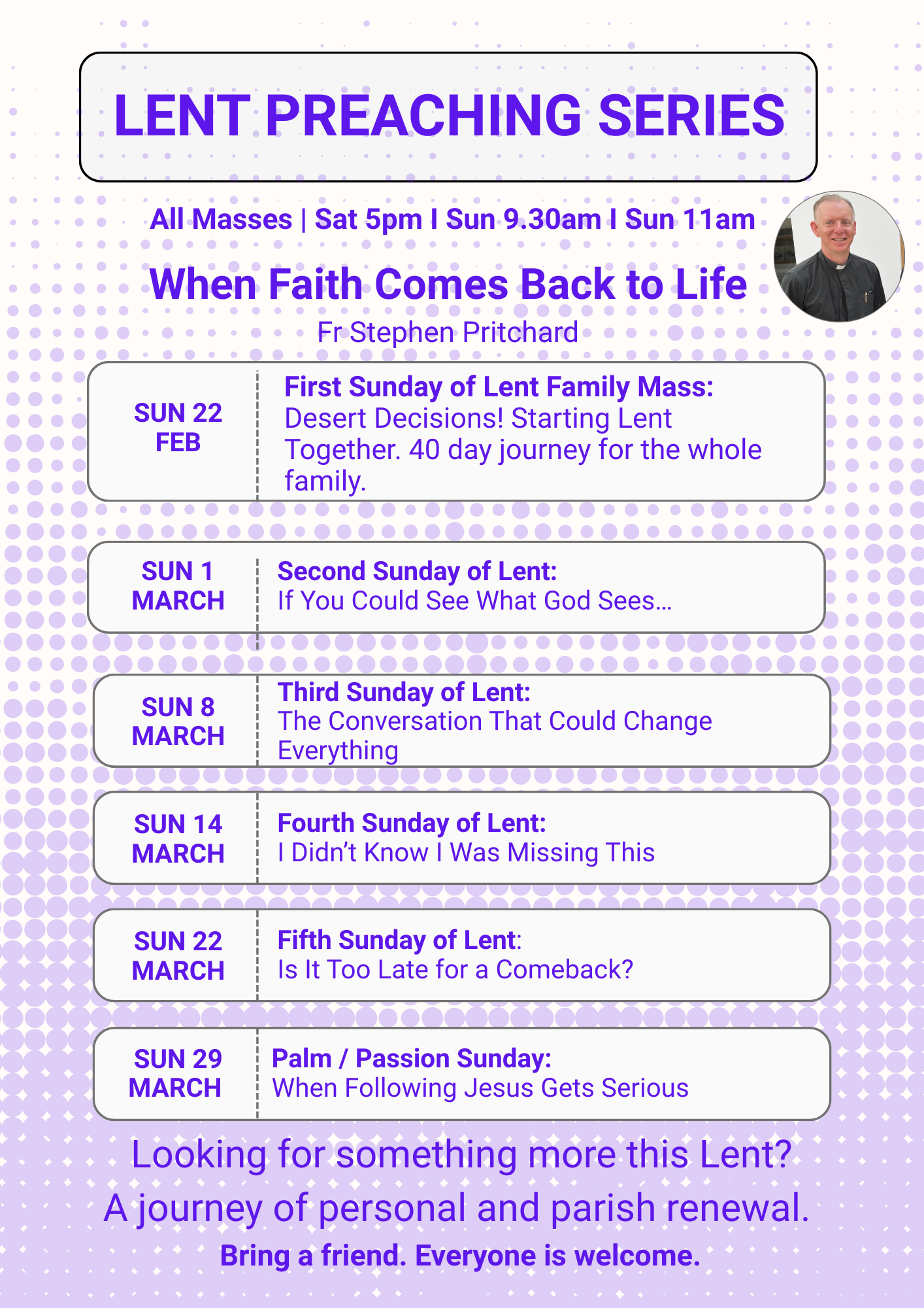 7:15am-7:30am: Ashes To Go Service- for those going to work.